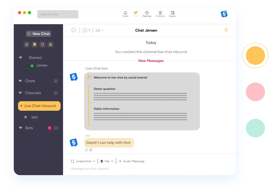 Easily add live chat to any channel in Zoom. Get real-time notifications of new chats and provide website chat support directly from Zoom.